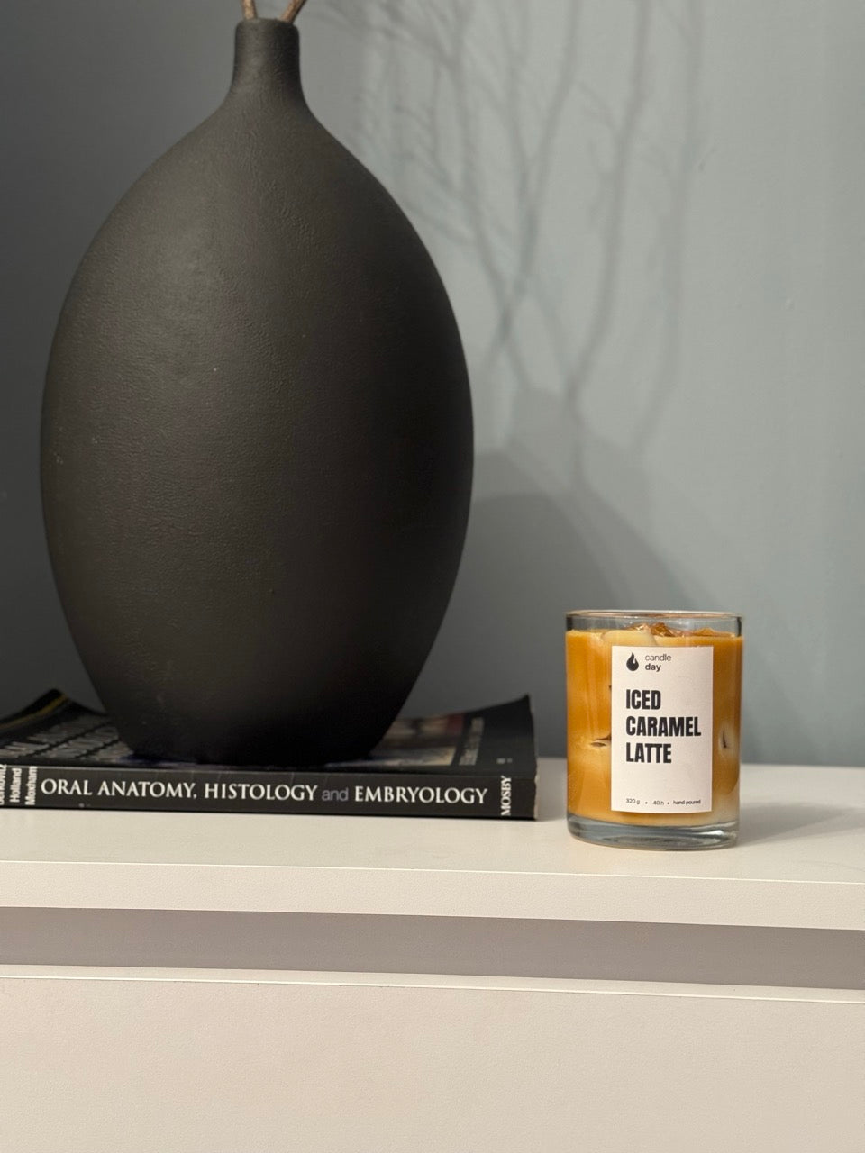 تأتي شمعة آيسد كاراميل لاتيه في كأس زجاجي أنيق بالمقاسات التالية: