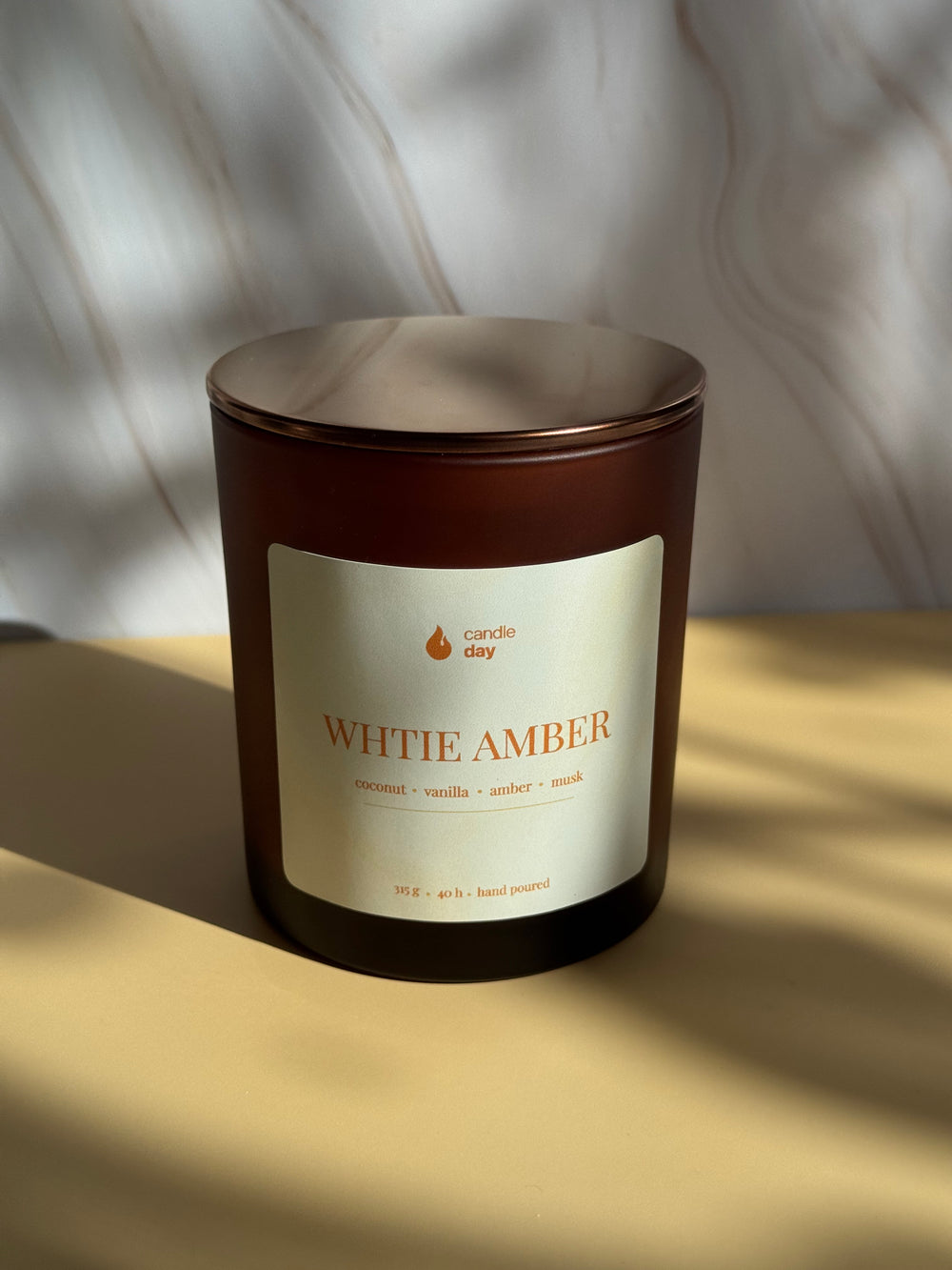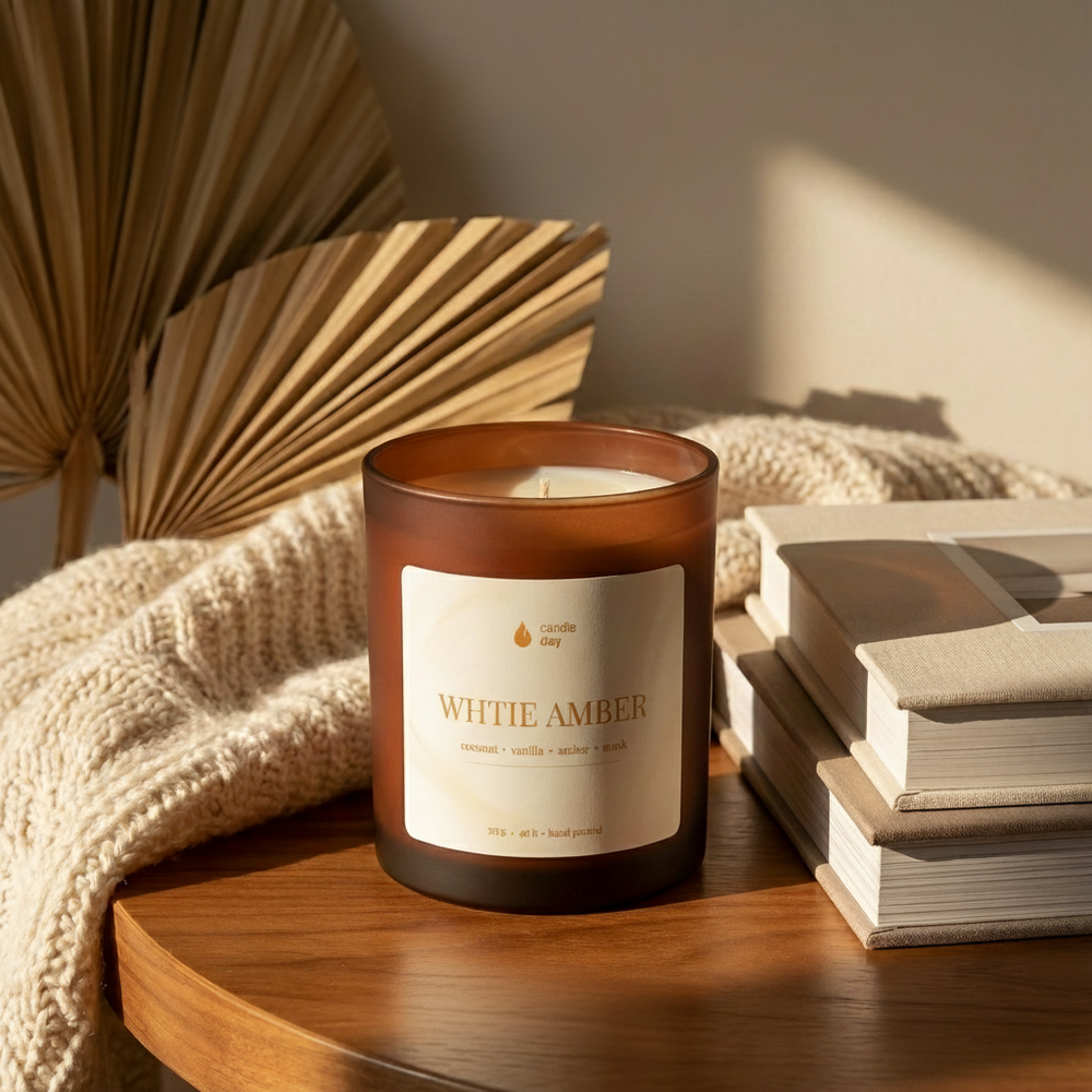 مصنوعة يدويًا بكميات صغيرة، شمعة بدفء العنبر الأبيض الناعم، الفاخر، والمريح.